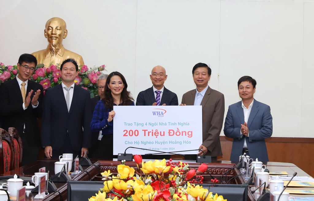 | Tập đoàn WHA trao tặng huyện Hoằng Hóa số tiền 200.000.000 đồng, để xây nhà tình nghĩa. |
