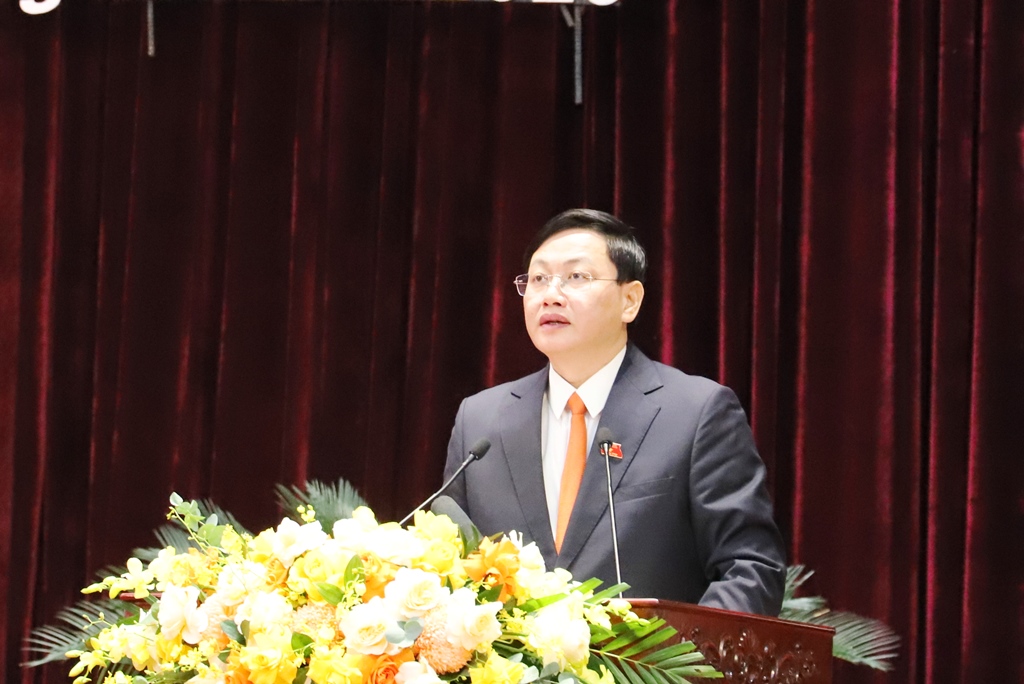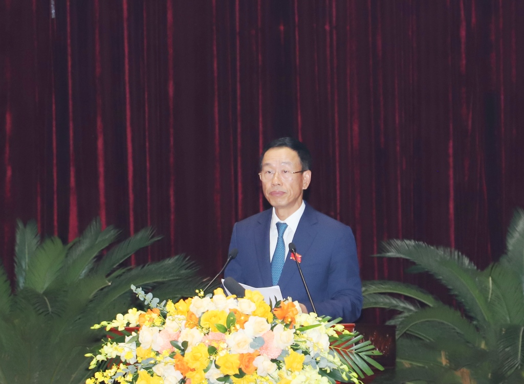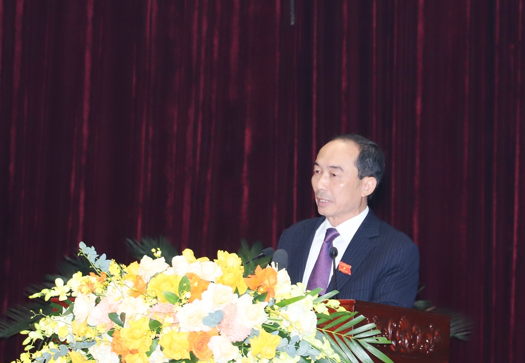 | Phó Chủ tịch tải app 78win tỉnh Lê Quang Hùng trình bày báo cáo tại kỳ họp. |